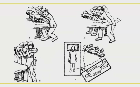 - если есть подозрение на повреждение нижних отделов позвоночника, переломы костей таза, больного везут с согнутыми в коленях ногами;